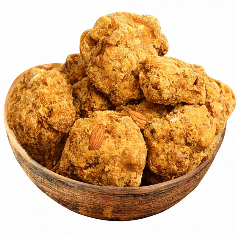 Pure Gur made from fresh sugarcane juice, crafted with care and traditional effort for natural sweetness.